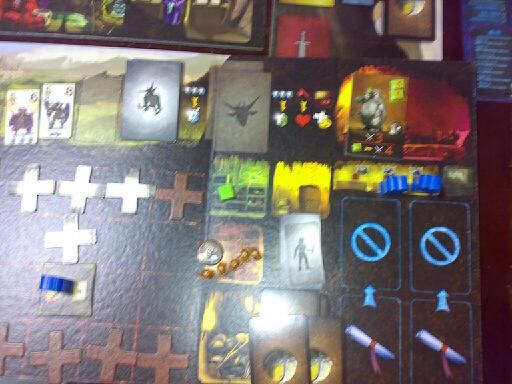 モンスターの種類は10種類のみから7枚使用、ただし同じクリーチャーでも効果が違う場が発生する?ということかな?他に5種類中3種類使用するスペルダイスと基本ダイスが3種で場が成立する様子。
