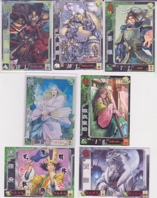 SR呂布(飛将気炎撃)・R兀突骨(猛進の大号令)・EX姜維(挑発)・LE諸葛亮(八卦の戦計)・U敬哀皇后(救護の舞)・GR徐庶・GC賈詡
