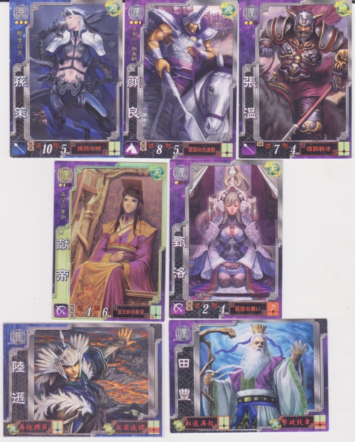 R孫策(雄飛の時)・R顔良(憂国の大進撃)・R張温(復興戦法)・SR献帝(漢王朝の希望)・R甄洛(憂国の舞)・GR陸遜・GR田豊
