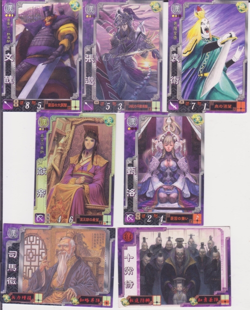 R文醜(憂国の大襲撃)・R張バク(決起の不動車輪)・R袁術(血の渇望)・SR献帝(漢王朝の希望)・R甄洛(憂国の舞)・GR司馬徽・GC十常侍