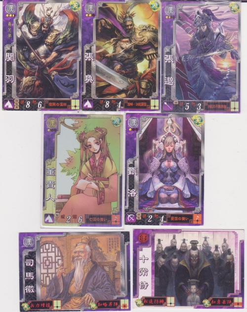 R関羽(復興の温杯)・R張奐(旋略・決起憂国)・R張バク(決起の不動車輪)・SR董貴人(亡国の舞)・R甄洛(憂国の舞)・GR司馬徽・GC十常侍
