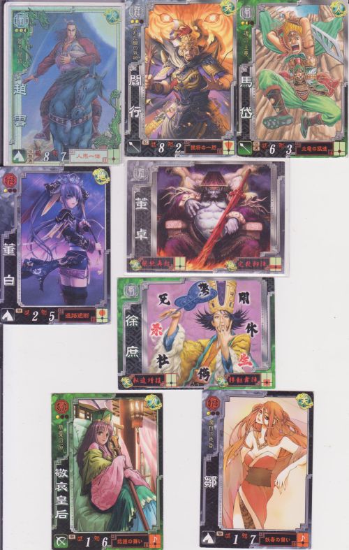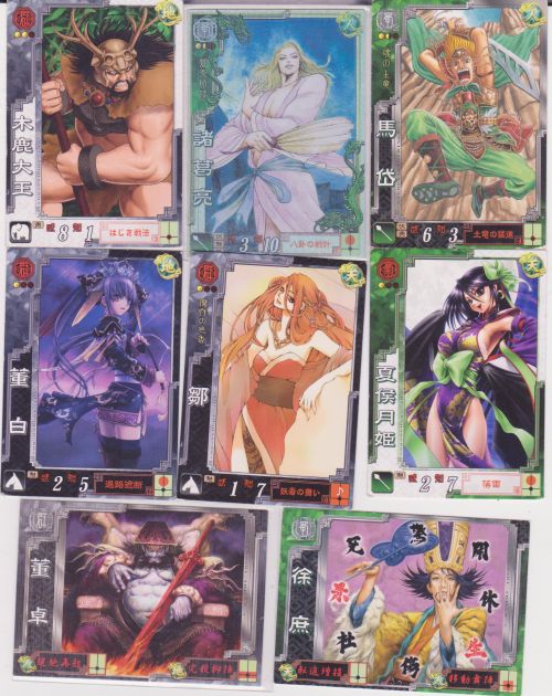 C木鹿大王(はじき戦法)・LE諸葛亮(八卦の戦計)・R馬岱(土竜の猛進)・UC董白(退路遮断)・UC芻β(妖毒の舞い)・C夏侯月姫(落雷)・GR董卓・GR徐庶
