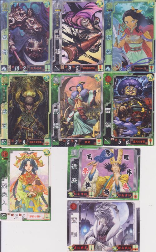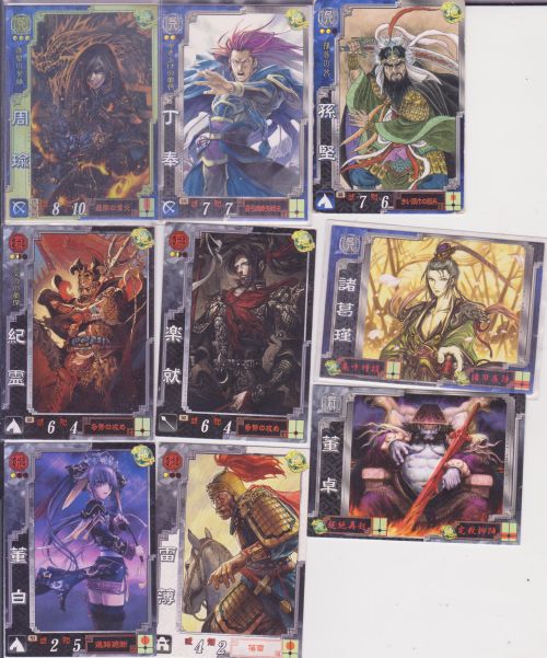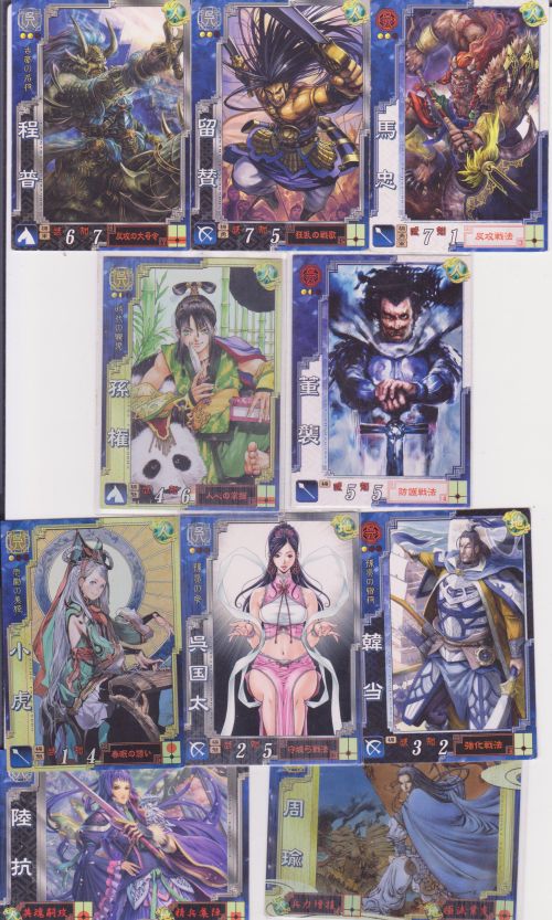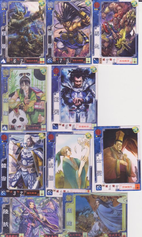 R程普(反攻の大号令)・R留賛(狂乱の戦歌)・C馬忠(反攻戦法)・SR孫権(人心の掌握)・C董襲(防護戦法)・UC韓当(強化戦法)・C虞翻(孫呉の炎)・Cシショウ(防柵強化)・GR陸攻・GSR周瑜