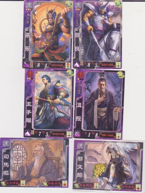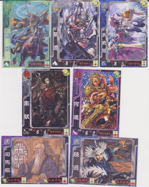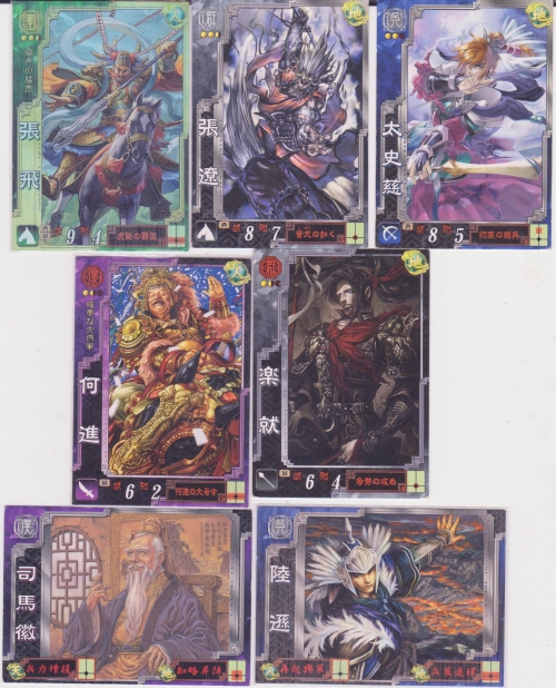 SR張飛(虎髭の覇気)・R張遼(蚩尤の如く)・R大史慈(約束の援兵)・UC何進(何進の大号令)・UC楽就(多勢の攻め)・GR司馬徽・GR陸遜