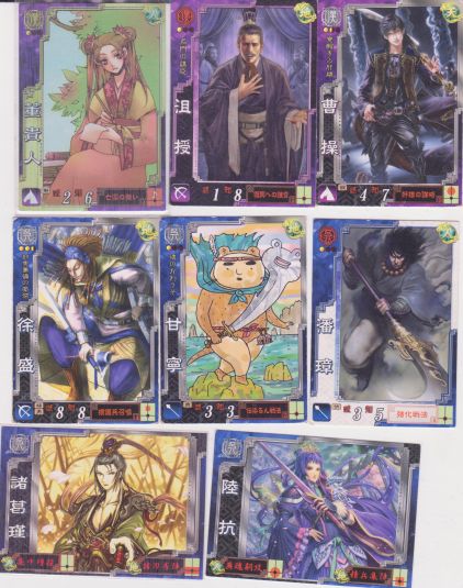 SR董貴人(亡国の舞)・U沮授(復興への諌言)・R曹操(奸雄の謀略)・R徐盛(援護兵召喚)・R甘寧(かわうそ)・C潘璋(強化戦法)・GR諸葛瑾・GR陸抗