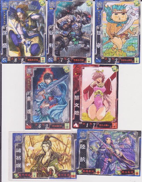 R徐盛(援護兵召喚)・R谷利(竜巻の弓術)・R甘寧(かわうそ)・R楽進(突破戦法)・U蔡文姫(飛天の舞)・GR諸葛瑾・GR陸抗