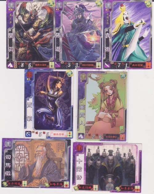 R関羽(復興の温杯)・R張バク(決起の不動車輪)・R袁術(血の渇望)・C賈華(槍兵召喚)・SR董貴人(亡国の舞)・GR司馬徽・GC十常侍