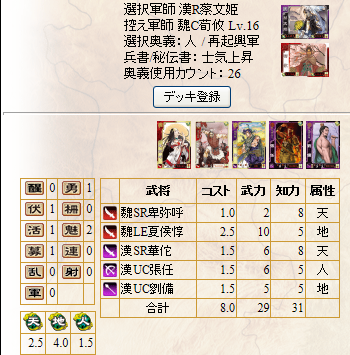 三国志大戦:マイナーデッキ中心で基本ODB250以上のデッキ使いです(君主名:百合姉妹:姉)。現在司空~丞相をうろちょろしてます。