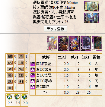 三国志大戦:マイナーデッキ中心で基本ODB250以上のデッキ使いです(君主名:百合姉妹:姉)。現在司空~丞相をうろちょろしてます。